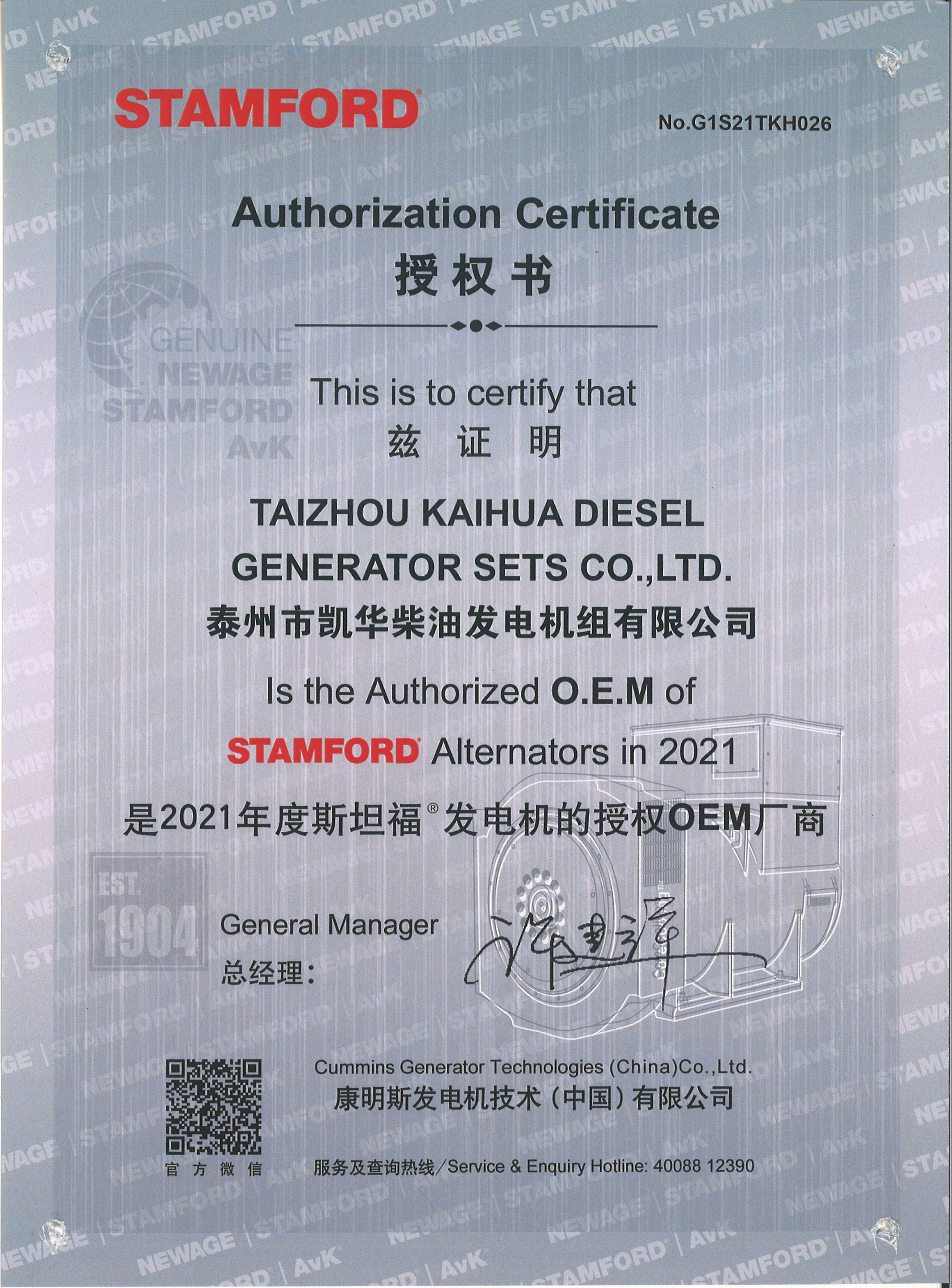 泰州市凱華柴油發(fā)電機(jī)組有限公司創(chuàng)建于2003年,是一家集柴油發(fā)電機(jī)組燃?xì)獍l(fā)電機(jī)組的研發(fā)、生產(chǎn)、銷售為一體的高新技術(shù)民營(yíng)企業(yè),公司座落于“漢唐古郡,淮海名區(qū)”,具有“鳳凰城”美稱的祥泰之州——江蘇省泰州市,地處中國(guó)經(jīng)濟(jì)最發(fā)達(dá)的長(zhǎng)三角經(jīng)濟(jì)圈,水陸空立體交通,地理位置十分優(yōu)越。公司目前注冊(cè)資本金11800萬(wàn)元人民幣,生產(chǎn)基地占地六十畝,現(xiàn)有各類高素質(zhì)員工一百多名,專業(yè)技術(shù)人員達(dá)46人,其中高級(jí)技術(shù)人員16人,年銷售額近6億元。 公司主營(yíng)產(chǎn)品:3~3000KW陸用柴油發(fā)電機(jī)組,15~600KW移動(dòng)拖車電站,12~1000KW船用應(yīng)急柴油發(fā)電機(jī)組,各種靜音型、中高壓、多機(jī)并聯(lián)、燃?xì)獾忍胤N機(jī)組以及進(jìn)口系列柴油發(fā)電機(jī)組,可滿足不同客戶的一切電力需求,還可滿足用戶不同電壓、不同頻率的要求。凱華公司是康明斯品牌的授權(quán)代理商,專業(yè)生產(chǎn)供應(yīng)康明斯柴油發(fā)電機(jī)組。